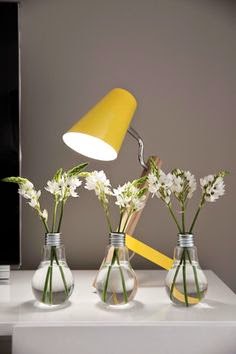Questa lampada gialla la trovo fantastica e le lampadine che fanno da vaso ai fiori sono uniche!!