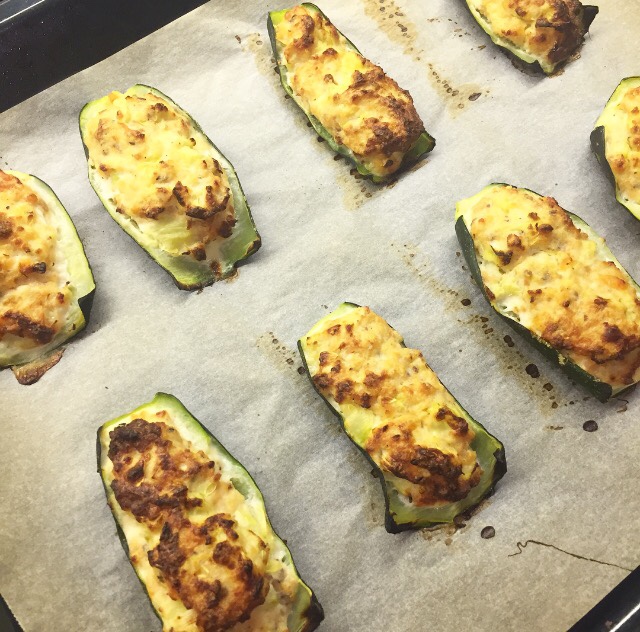 Riempite le zucchine, le ho adagiate sulla carta forno e le ho infornate per 15/20 minuti.