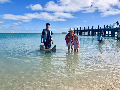 Monkey Mia, un posto meraviglioso per grandi e bambini, dove è possibile dar da mangiare ai delfini, fare il bagno o snorkel nel mare cristallino di Shark Bay, ammirando varie specie marine come balene, manta, tartarughe e tante razze di pesci.