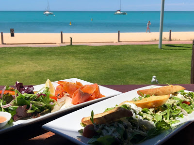 Nella città di Kalbarri, troverete invece qualche market se avrete bisogno di fare spesa, playground, qualche ristorante e a proposito di ristoranti, prendete carta e penna e segnatevi questo nome: “Finlay’s Kalbarri”, la particolarità nell’arredamento rende il posto speciale! Vecchi oggetti, tavoli e sedie, lavagne, libri, giochi per i bambini, ma soprattutto abbiamo mangiato molto bene. Tutto a base di pesce fresco di giornata, pescato nel mare del posto, piatti particolari e gustosi. Siamo stati fortunati anche quella volta!