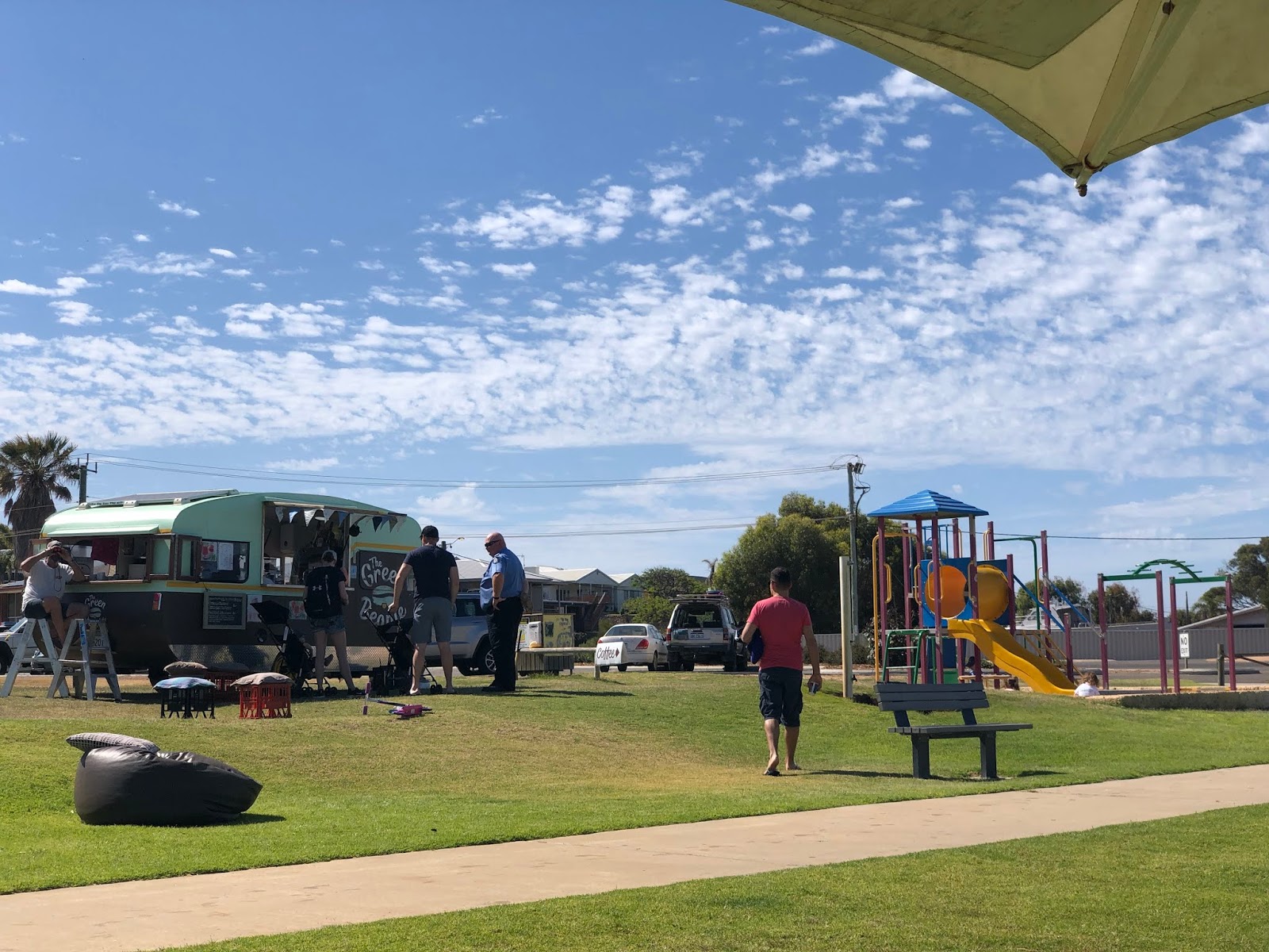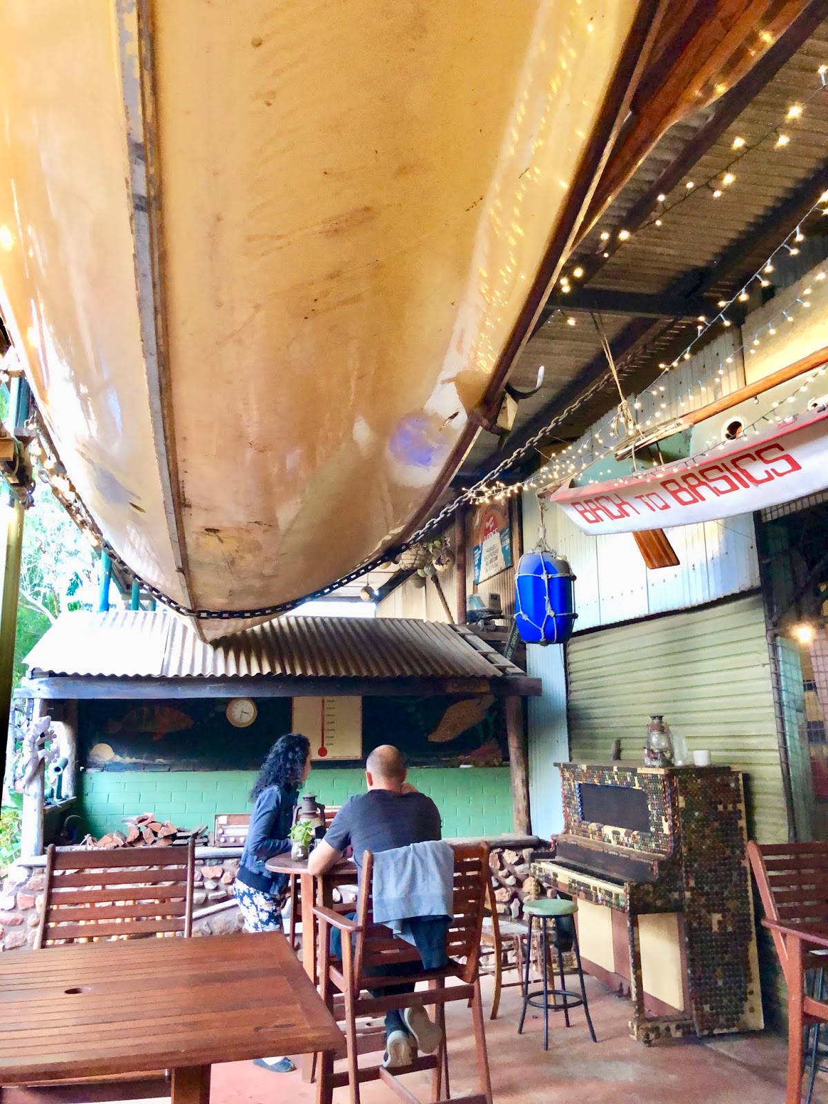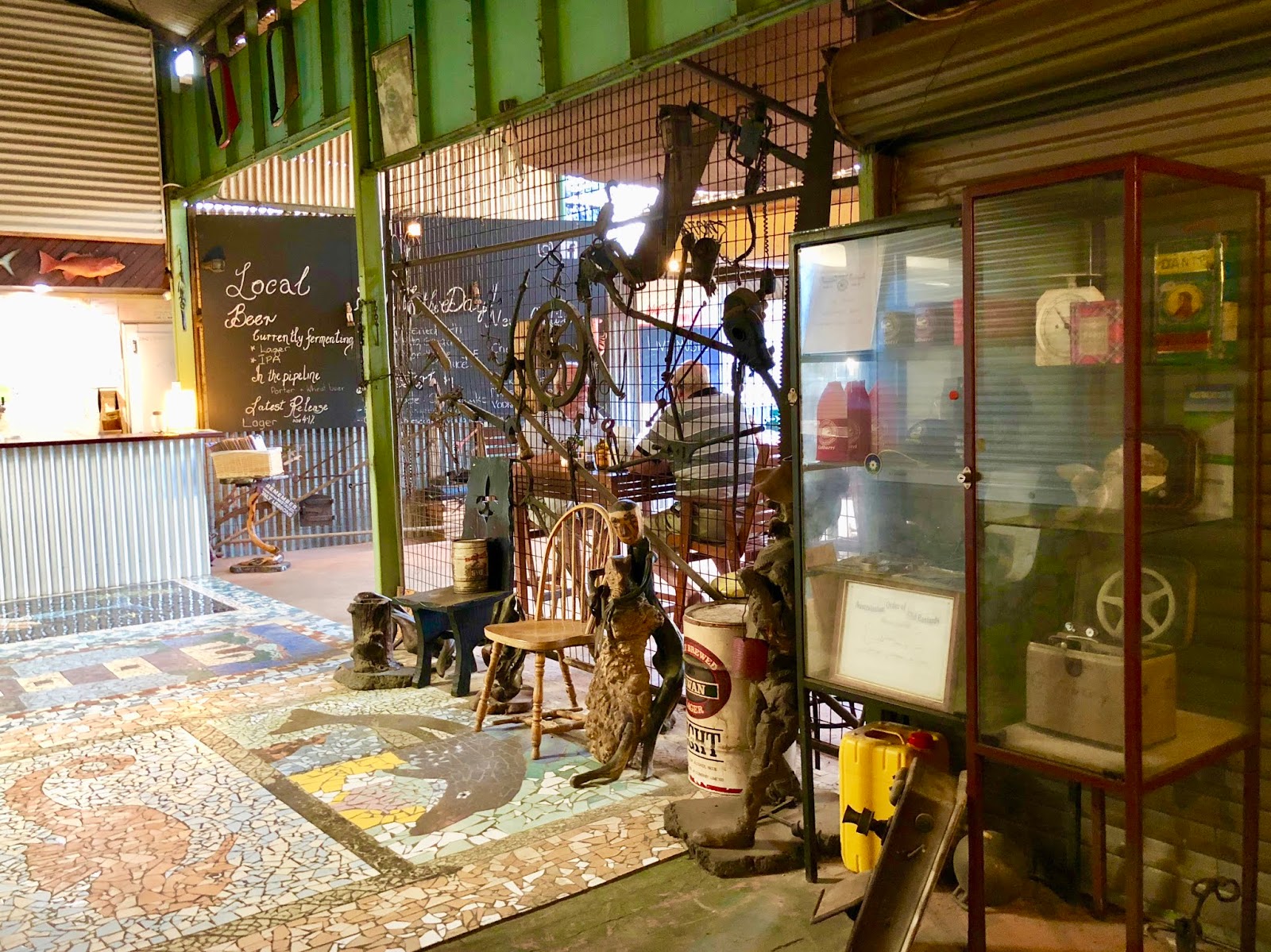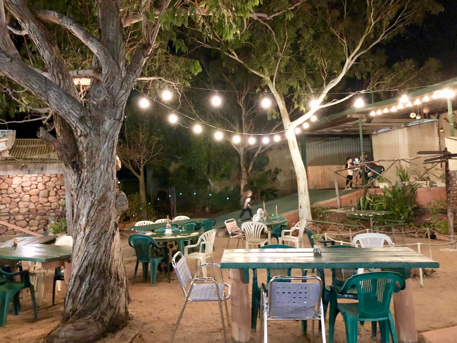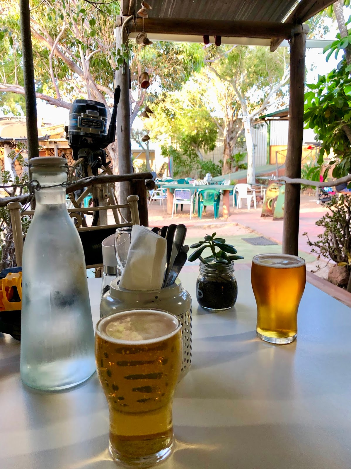 Nella città di Kalbarri, troverete invece qualche market se avrete bisogno di fare spesa, playground, qualche ristorante e a proposito di ristoranti, prendete carta e penna e segnatevi questo nome: “Finlay’s Kalbarri”, la particolarità nell’arredamento rende il posto speciale! Vecchi oggetti, tavoli e sedie, lavagne, libri, giochi per i bambini, ma soprattutto abbiamo mangiato molto bene. Tutto a base di pesce fresco di giornata, pescato nel mare del posto, piatti particolari e gustosi. Siamo stati fortunati anche quella volta!