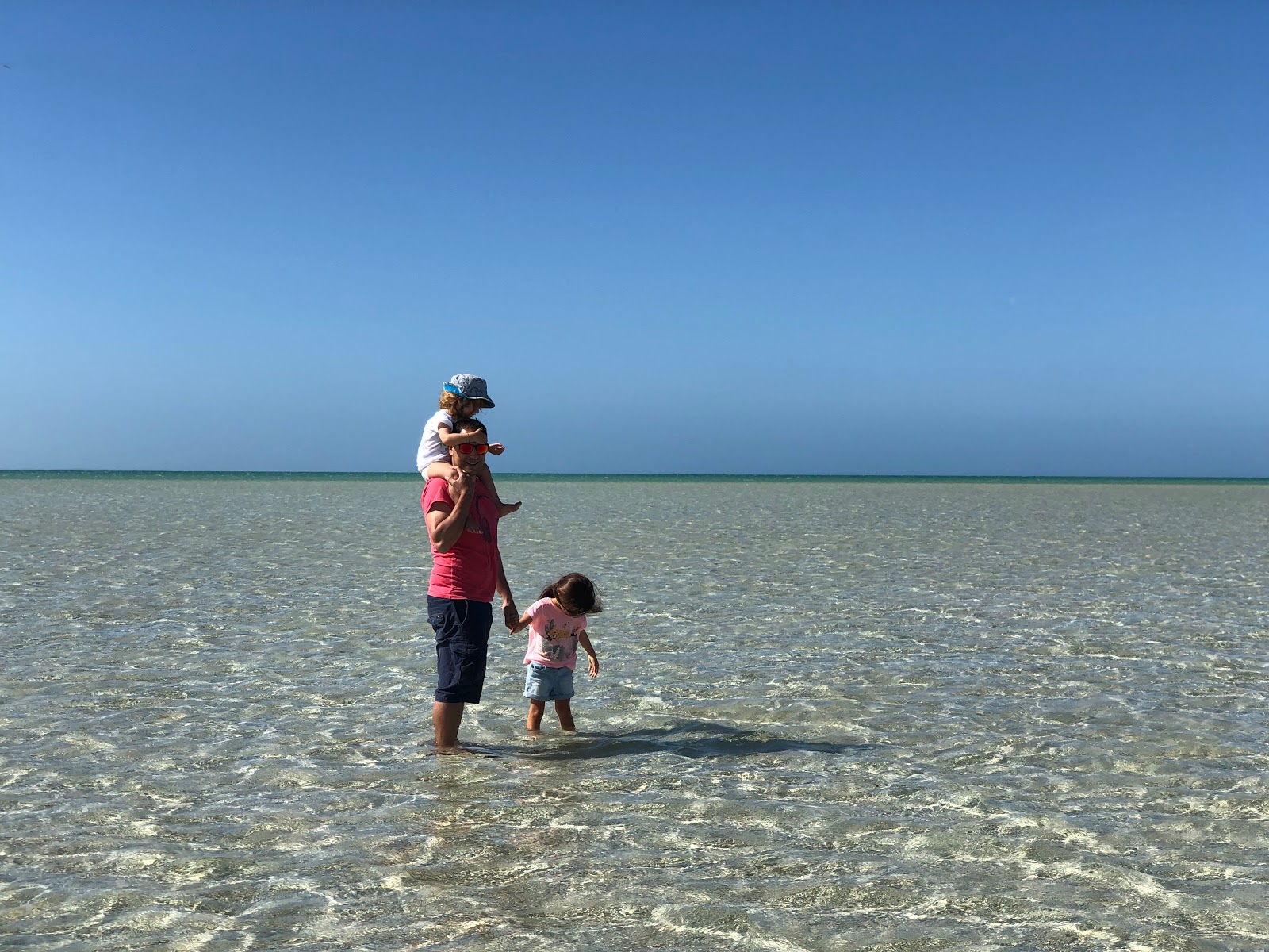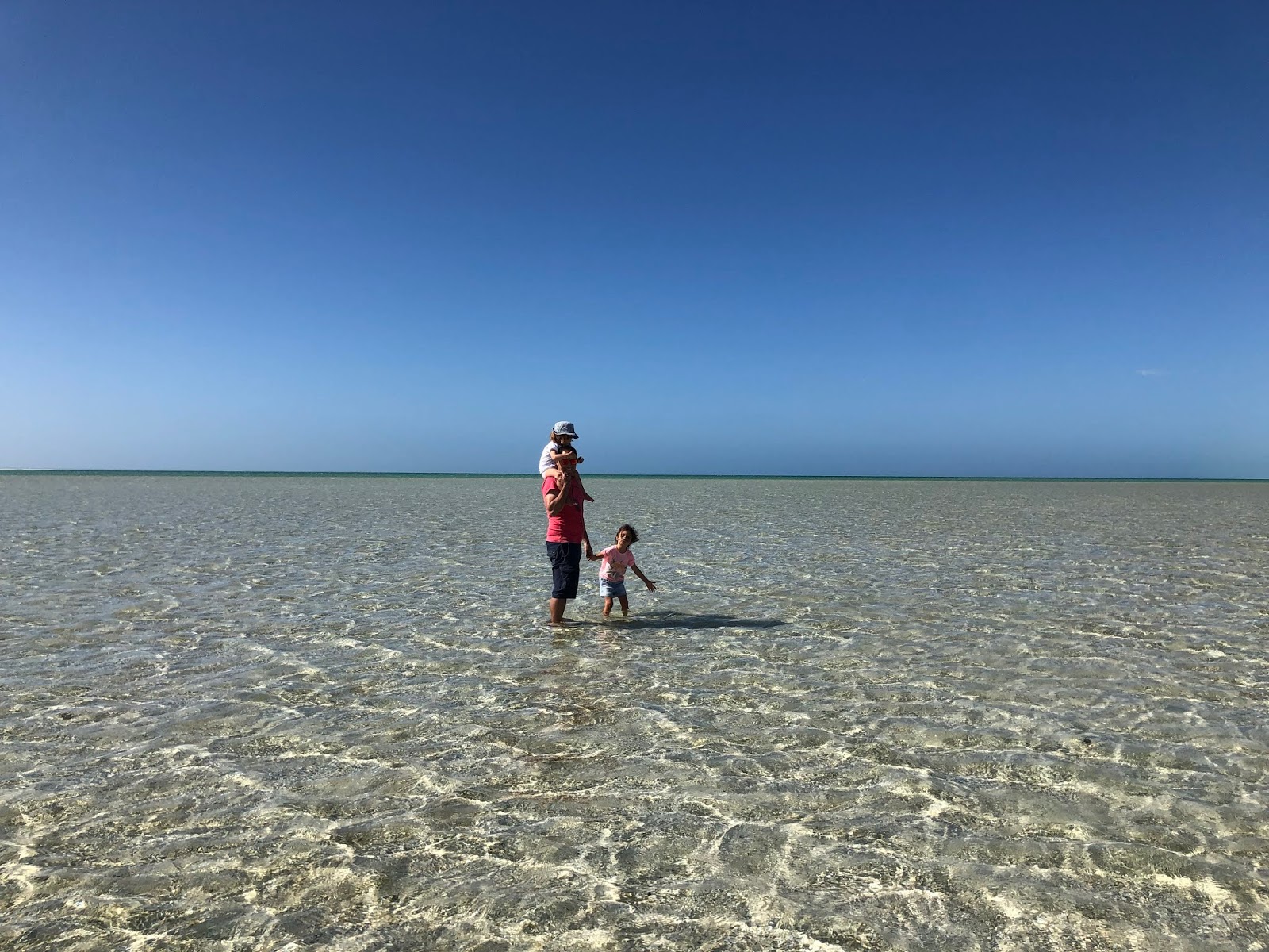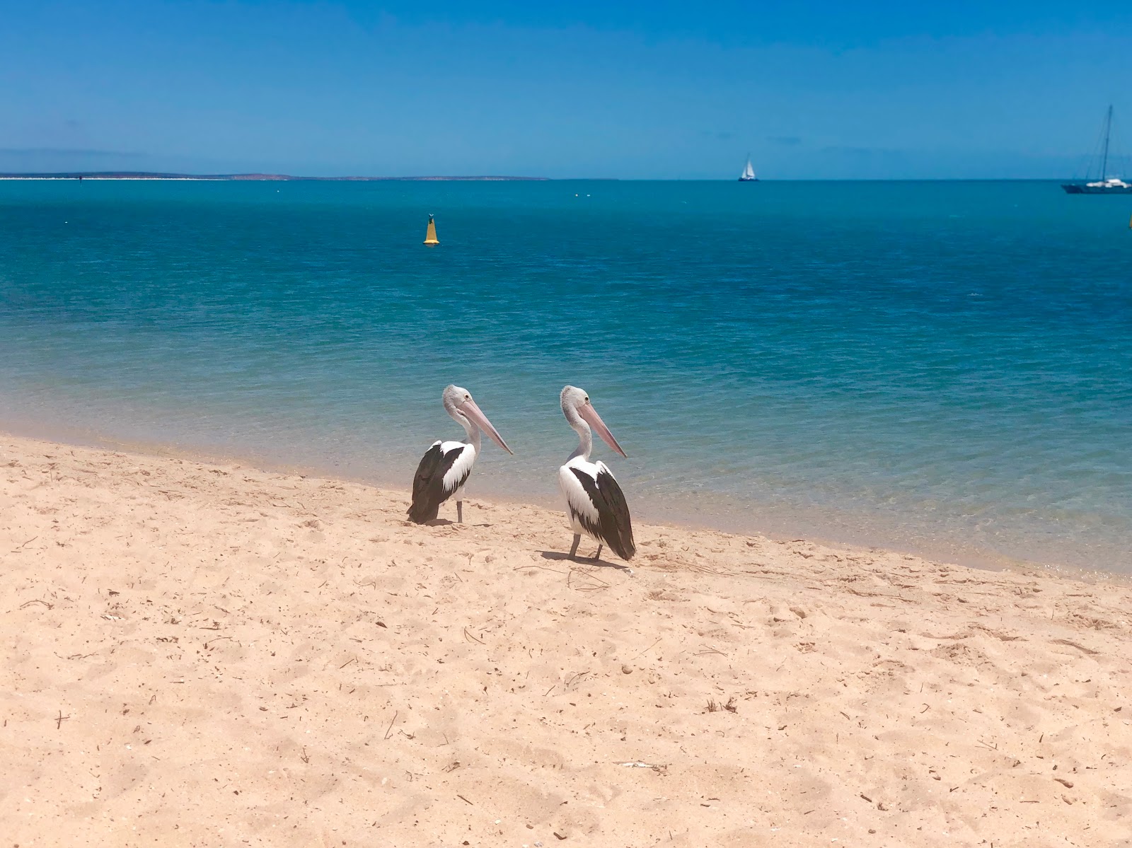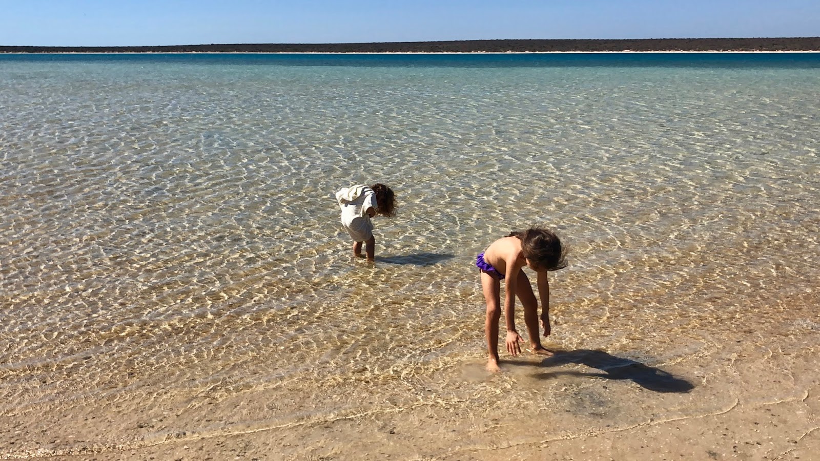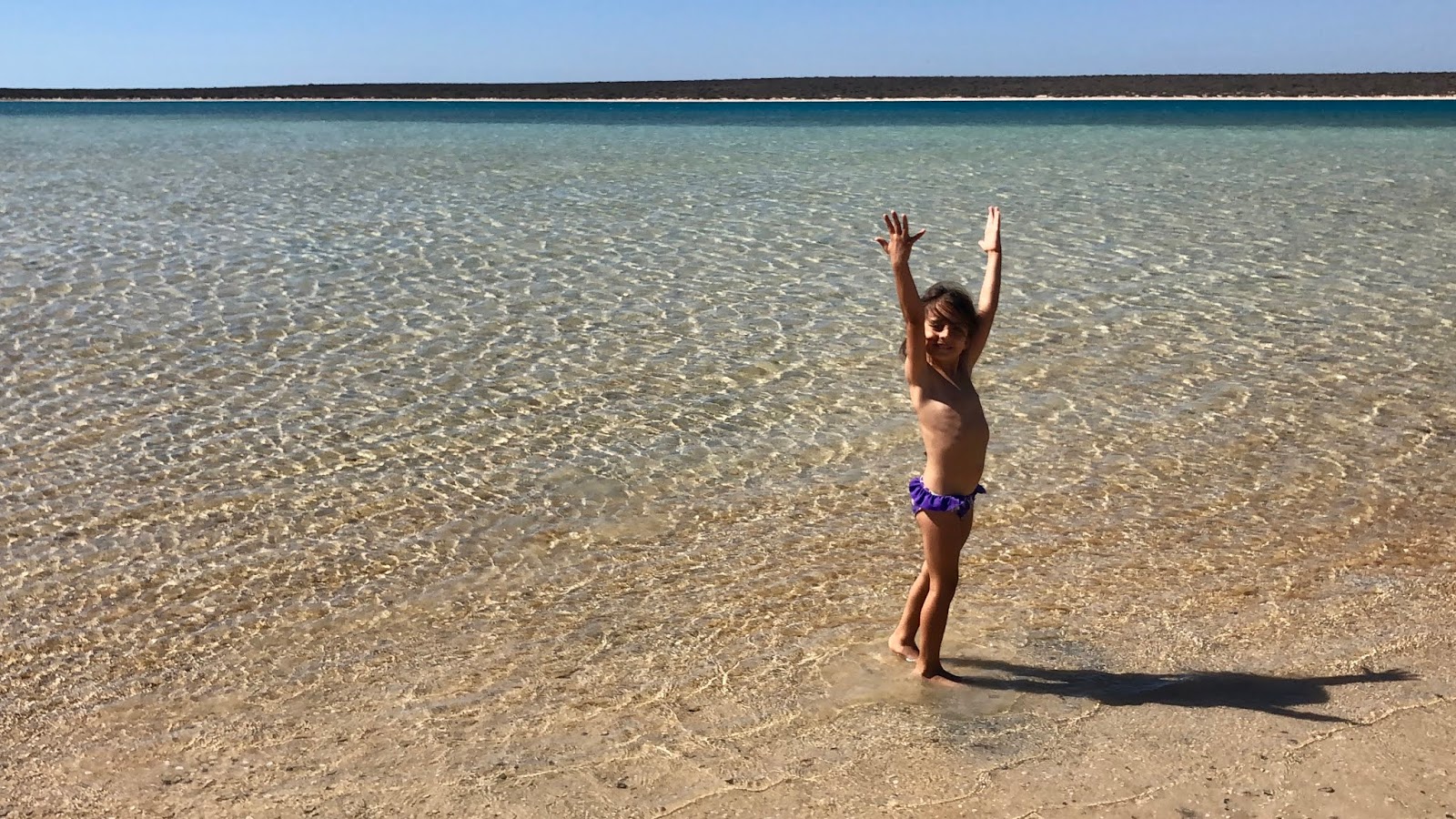 La tappa seguente è stata Denham (480 Km), alla scoperta di Monkey Mia per incontrare i delfini, ma durante il tragitto poco prima di arrivare, non abbiamo potuto fare a meno di fermarci a Shell Beach, il nome è dato proprio dal fatto che la spiaggia è completamente piena di conchiglie ed un mare molto basso e da sogno.